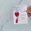 PRODUCT DETAILS: 4-inch bag charm is attached to a 4 x 6 inch card with a beautiful message.